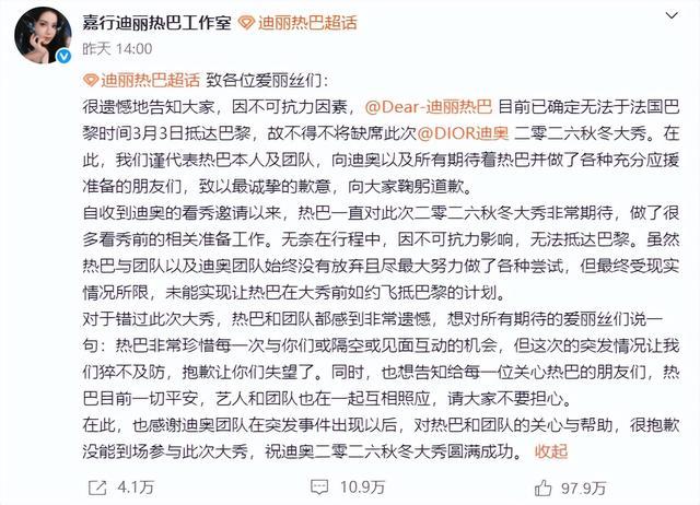 有消息透露,热巴团队中的化妆师、造型师等人,并没有跟着一起被滞留。