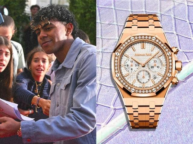足球运动员佩戴皇家橡树腕表的比例就像亚马尔的进球一样多:梅西、范戴克、伊布、哈兰德等很多球星都戴过这款经典的运动手表。因此,拉明加入其中并不意外。虽然年龄上他还是一个“小孩哥”,但他的实力已经进入最顶级的巨星之列,佩戴这款合适的腕表再自然不过。