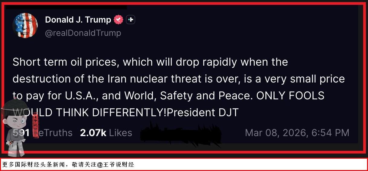 就在全球车主、投资者集体懵圈的时刻,美国总统特朗普在社交平台扔下一句引爆全网的话:短期油价上涨,是和平所需付出的“微小代价”。
