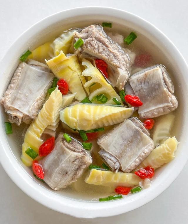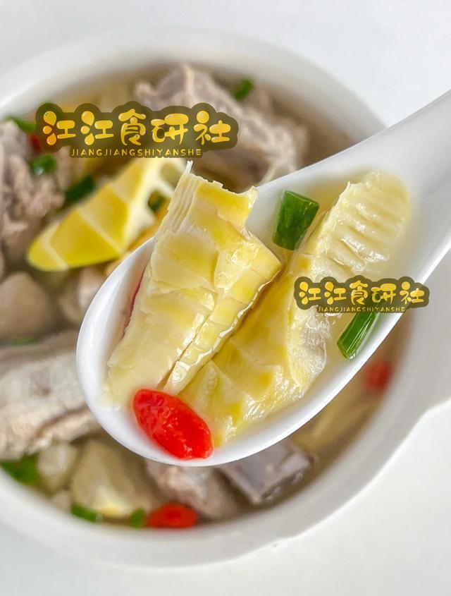 炖好的汤,清澈见底,表面浮着点点金色的油花。先喝一口汤,那种融合了肉脂香与笋子清甜的鲜美,瞬间充盈口腔。再咬一块春笋,脆嫩无渣,鲜味十足。 这口鲜汤,喝下去便是接住了春天的“龙气”,浑身通透。