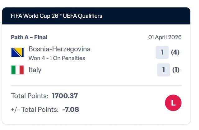 而意大利队这边,尽管球队不敌波黑损失了7.08分,但因为身前的塞内加尔队失分更多,因此得以上升排名。